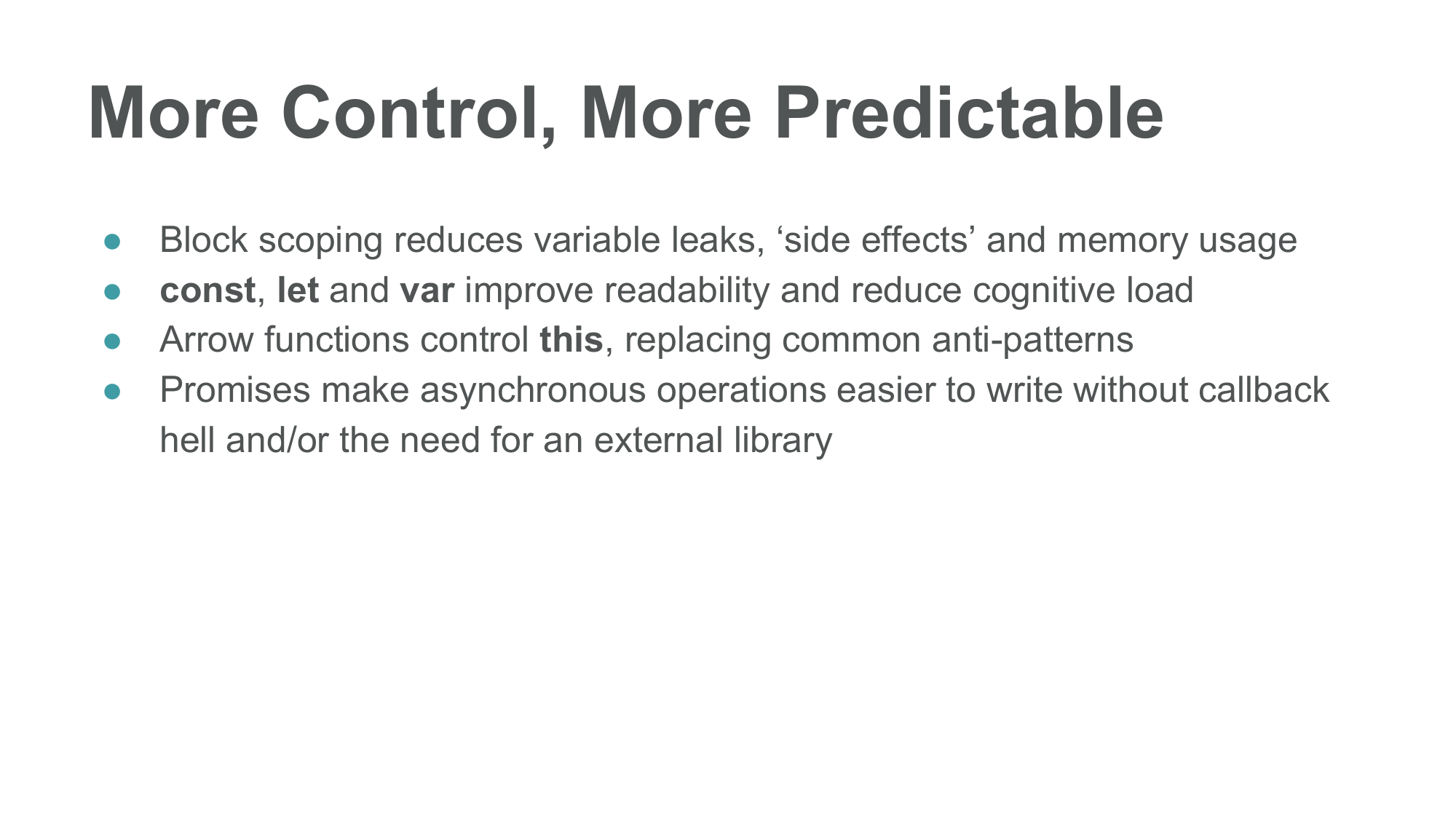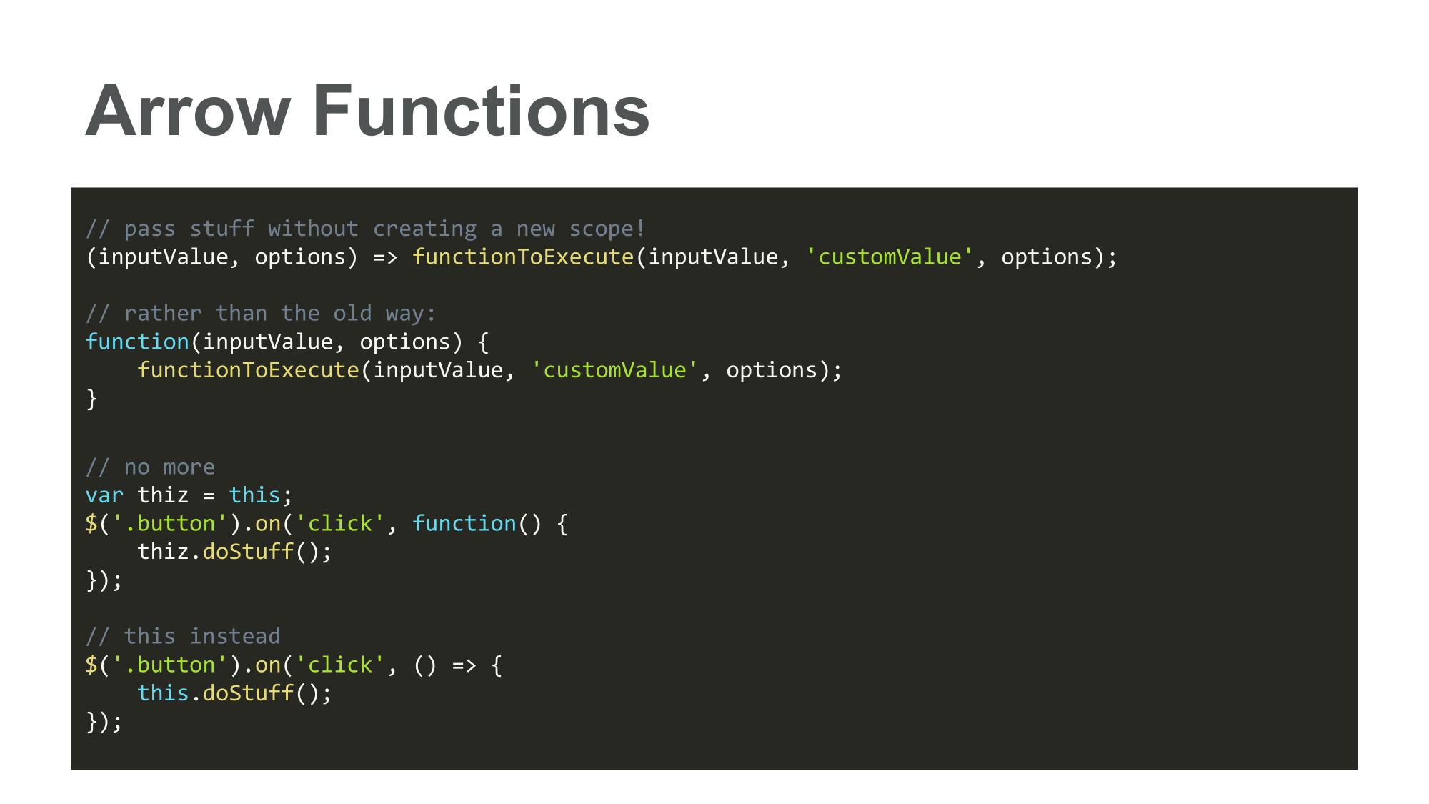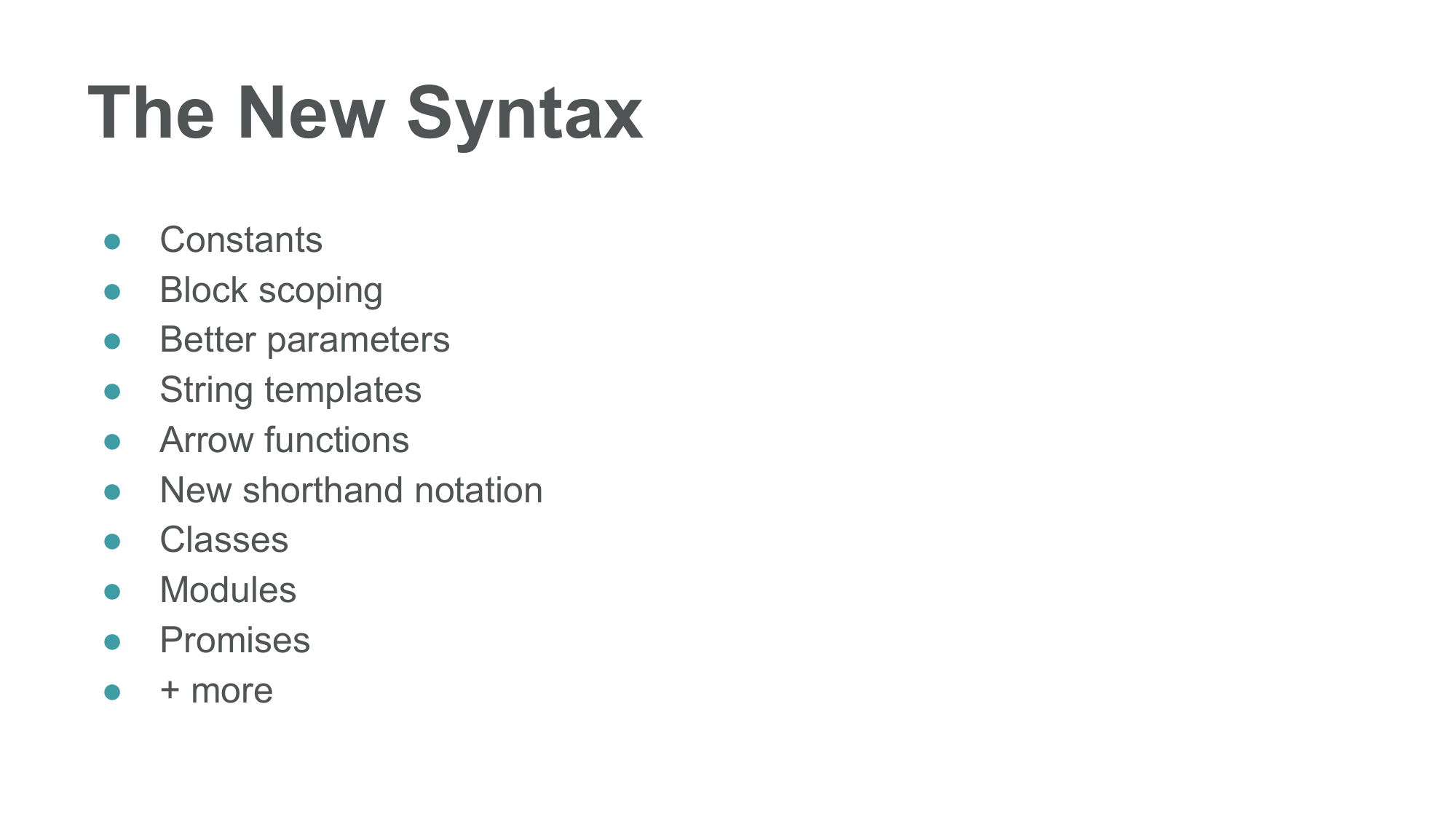 This was a Brown Bag / Lunch n’ Learn session on the topic of the new Javascript syntax and capabilities offered by ECMAScript 6.